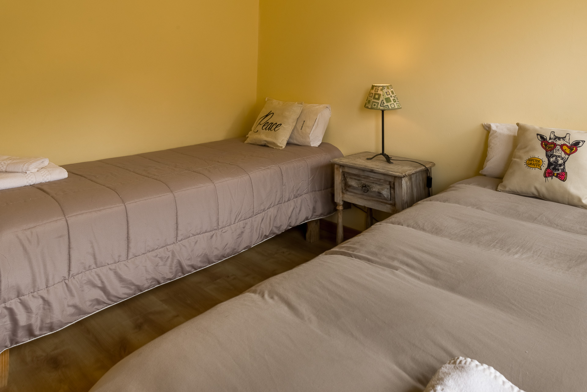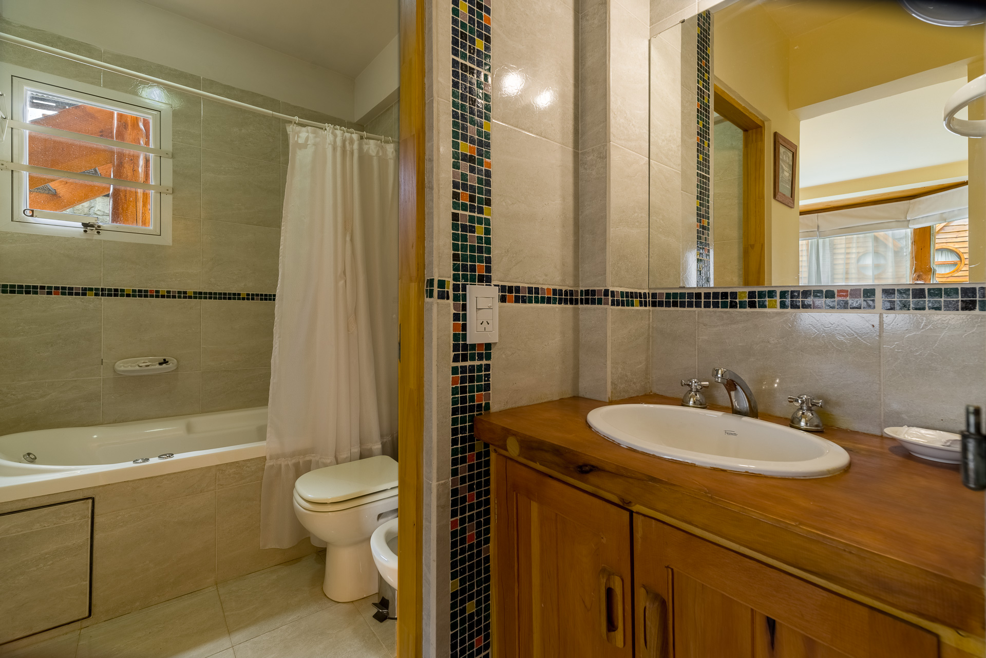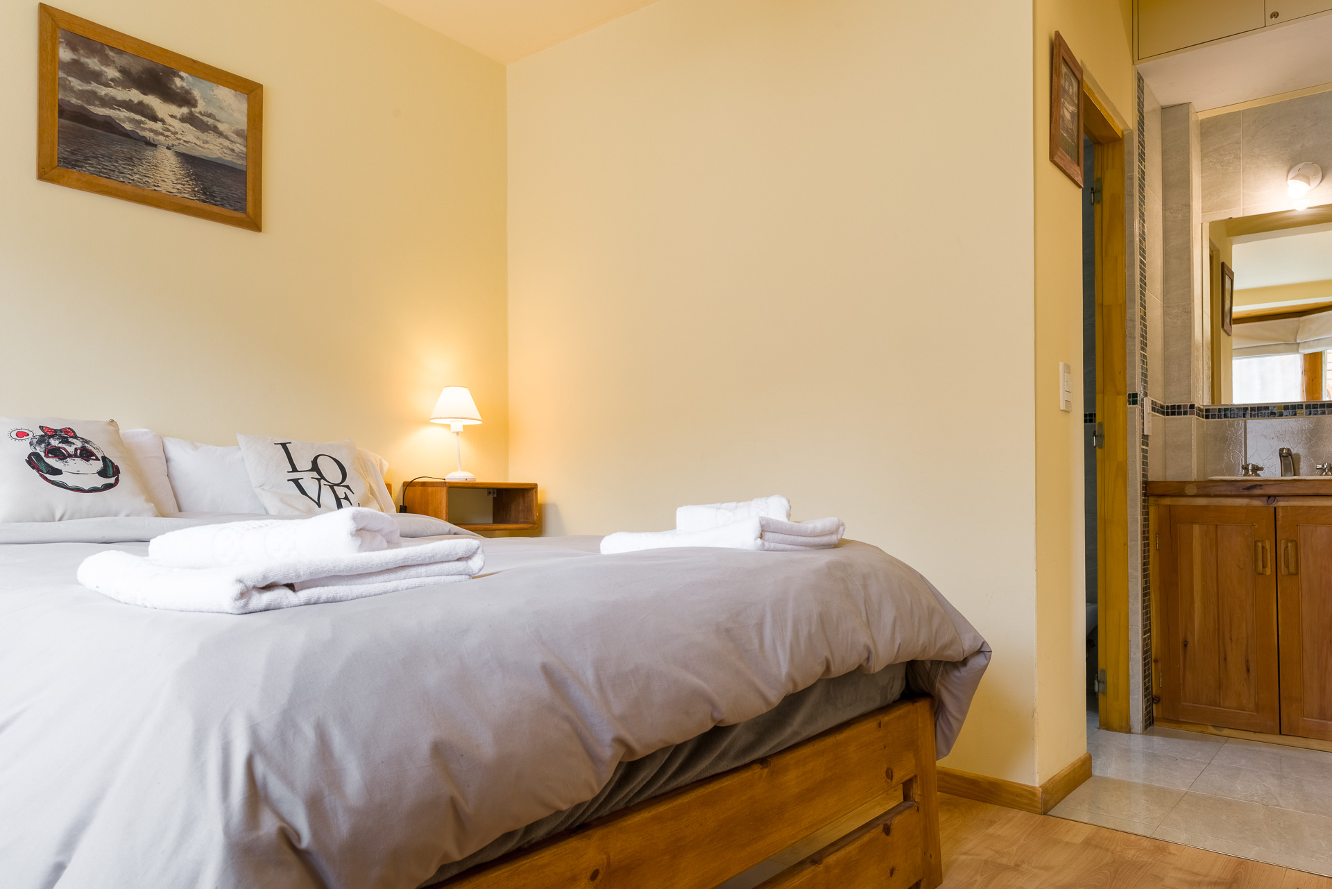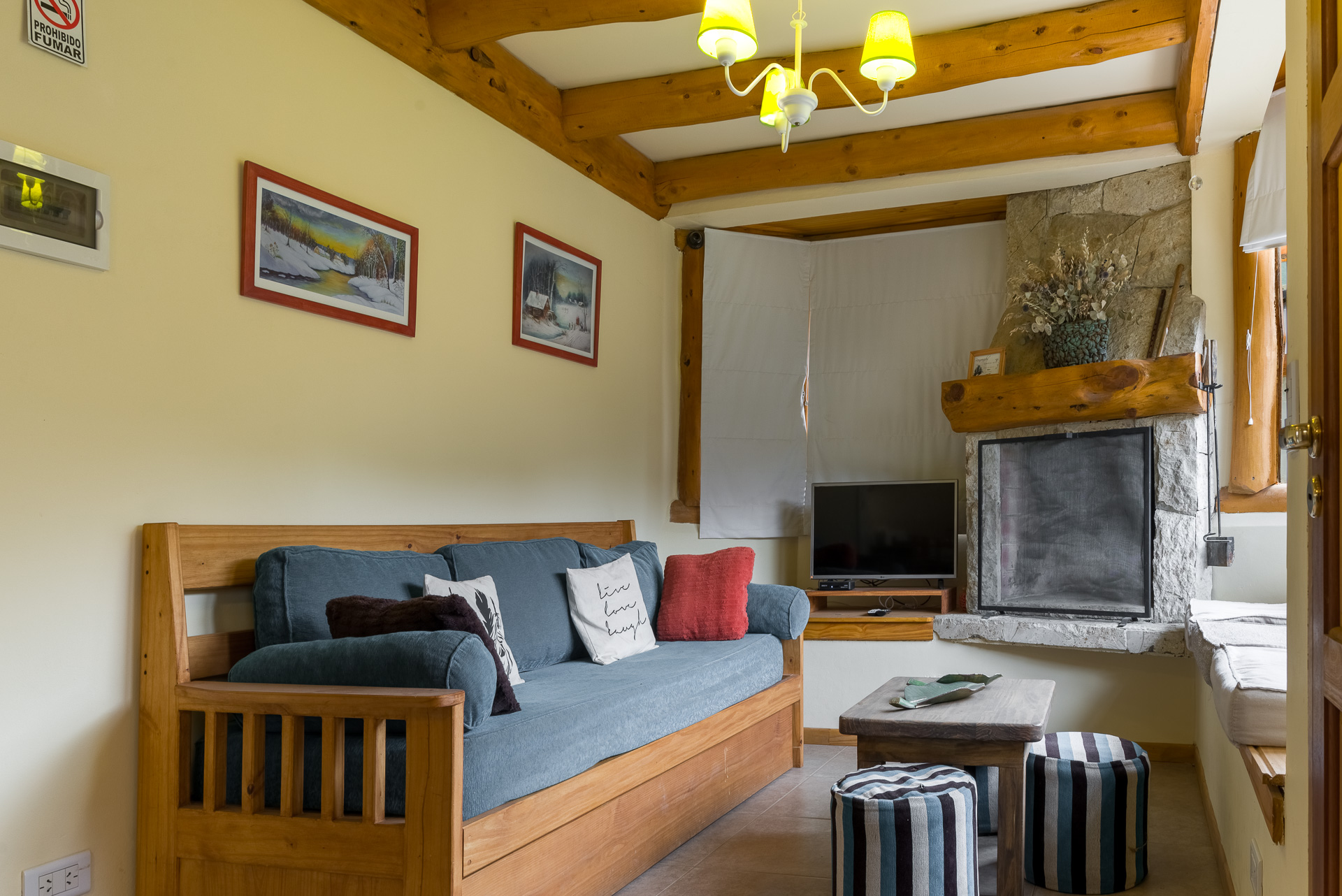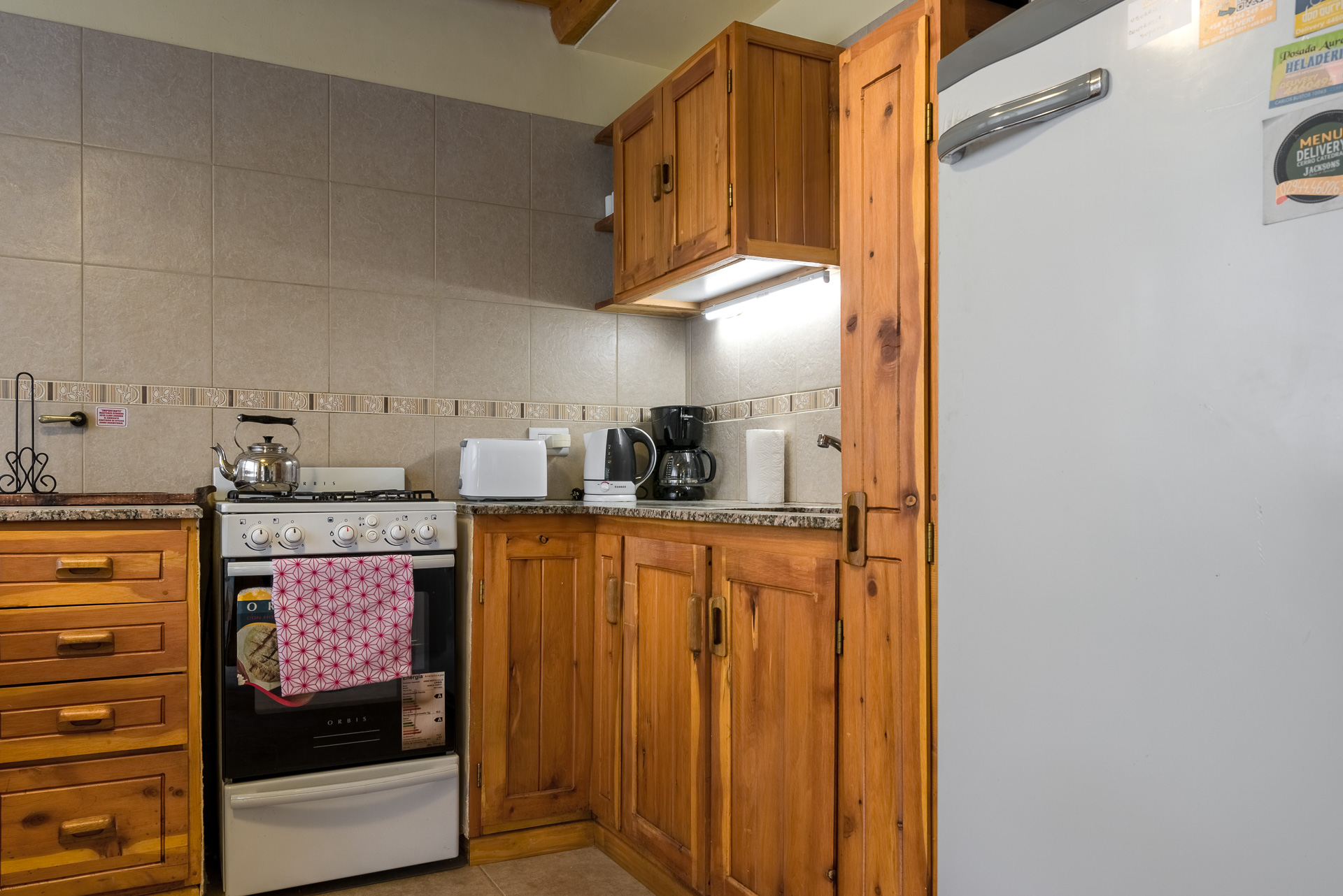 Este apart de 3 ambientes y 2 baños con hogar a leña, posee 1 habitación matrimonial, 1 habitación con 2 camas single y 2 sofá cama en el living. El apart incluye una cocina completa, 1 TV con DirecTV, WI-FI y calefacción central.