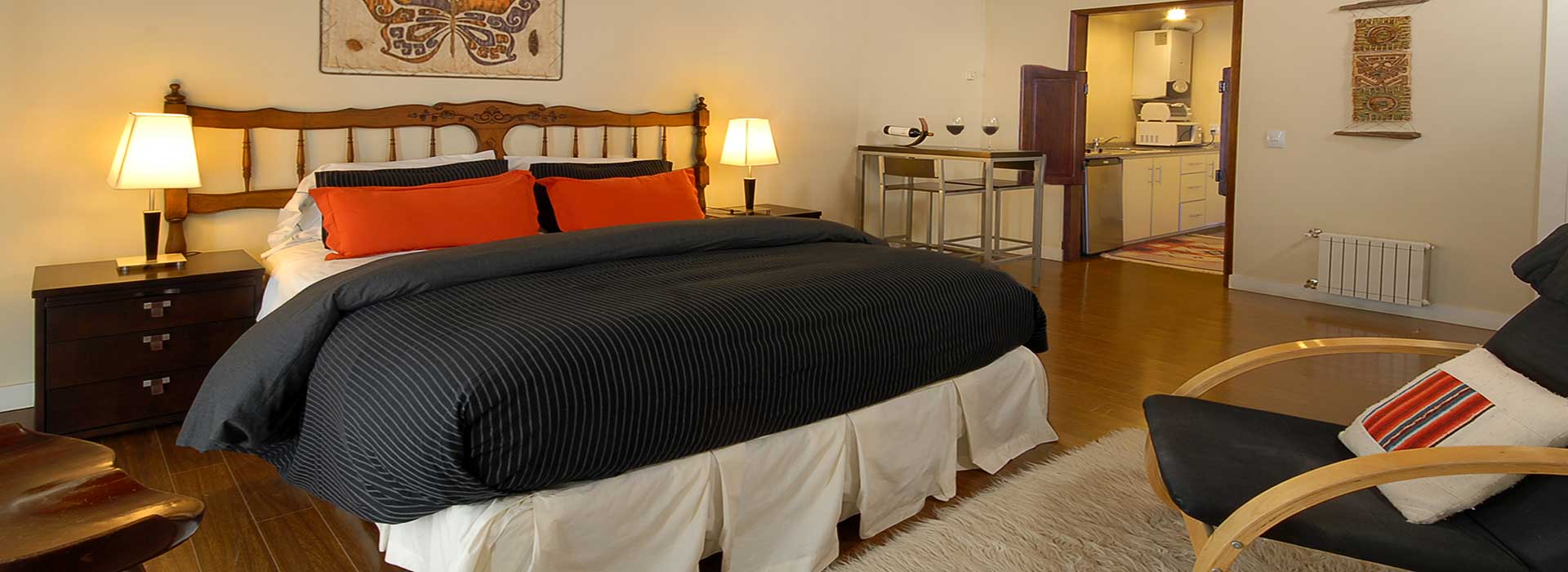 Este mono-ambiente de 30mts2 es único en su especie y, debido a su elevada posición y balcón, goza de una espectacular vista hacía las pistas. Esta ubicado a pocos metros de los medios de elevación. El apart cuenta con un somier matrimonial o dos somieres de 0,90 x 1,90, TV LCD 26C, TV satelital, WI-FI, calefacción central y doble vidrio, cocina completa con heladera, microondas y tostadora. El complejo también cuenta con una exclusiva vinoteca y wine bar (abierta en temporada invernal).